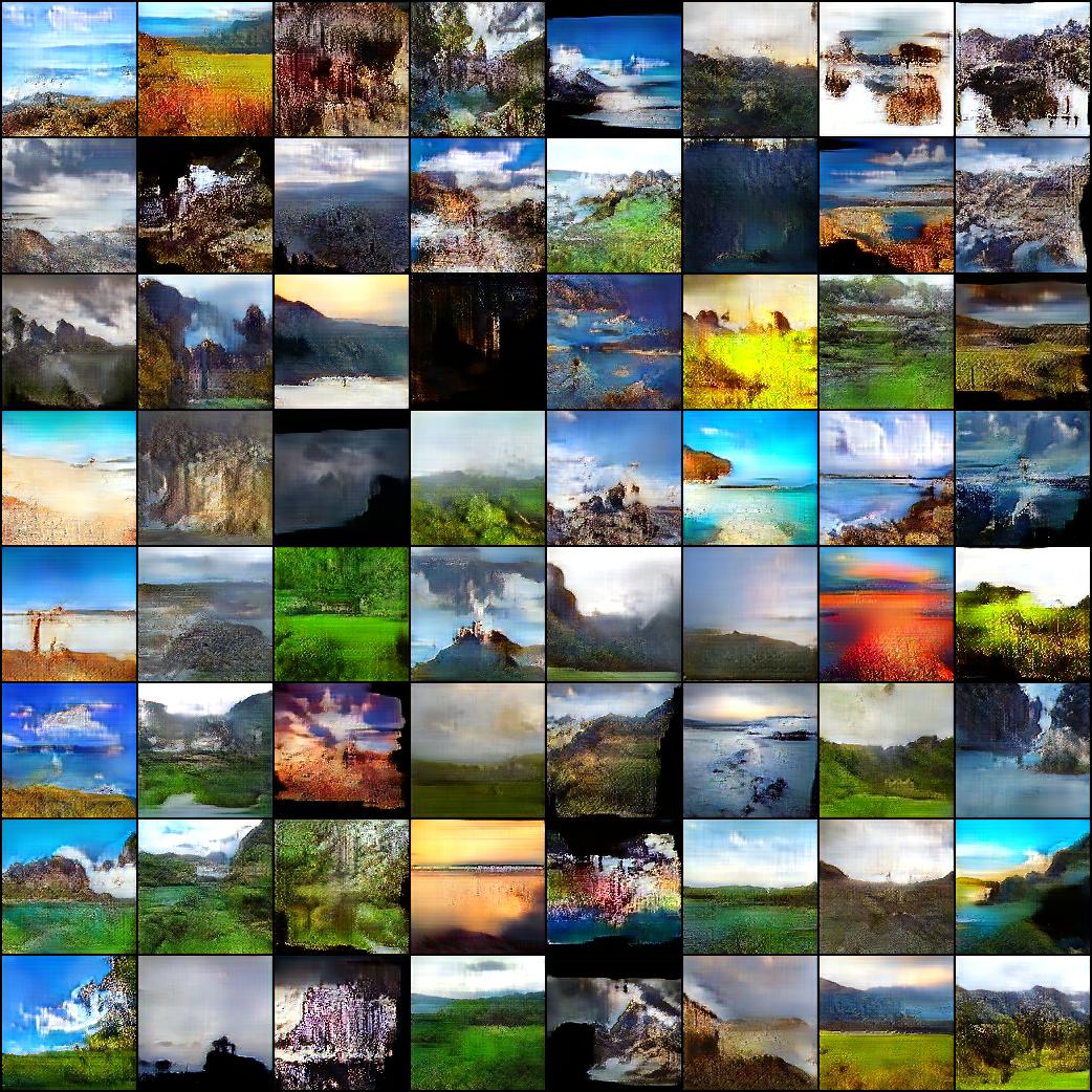 これはLightWeight-GANで「風景」の写真4318枚をトレーニングした