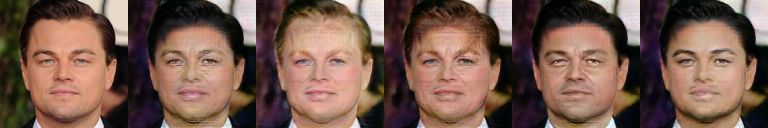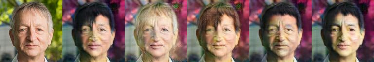 左から順に元画像、黒髪、金髪、茶髪、性別(男性)、年齢(若く)です。