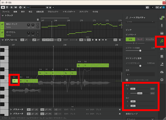 追記:一発でノイズが軽減できない時は、以下のように子音、母音の強さ、長さなどを1つ1つ調整して下さい。