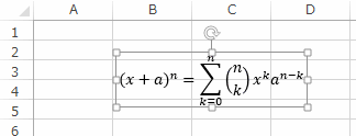 数学の数式を入力するには「数式」アイコンをクリックします。今回は「2項定理」を選択します。