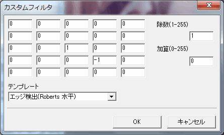 [エッジ検出(Roberts ロバーツ水平)の関数 - 汎用カスタムフィルタ]