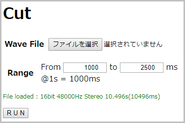 WAVE.jsを使用して「Waveファイル」(*.wav)の音声を「抽出」(切り取る)します。WAVE.jsはオープンソースなのでどなたでもご利用可能です。