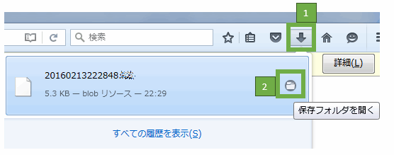 次に「通知バー」の「フォルダーを開く」のボタンを押します。すると、ダウロードフォルダが表示されます。