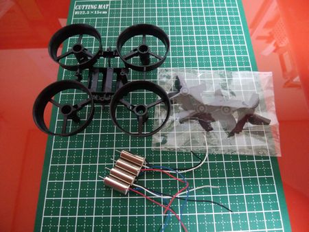 小型ドローン(JJRC H36)の「フレーム、ブラシレスモーター、プロペラ」のセットを約1000円で購入してみました。ドローン基板やバッテリーは付属していませんので、基板はArduino、バッテリーは6V2AのACアダプタを可変レギュレータで3.7V1.5Aにしています。